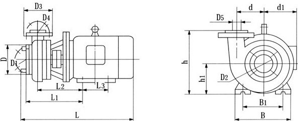 規格型號 | L | L1 | L2 | L3 | D | D1 | D2 | D3 | D4 | D5 | B | B1 | d | d1 | h | h1 | 地腳螺栓 |
