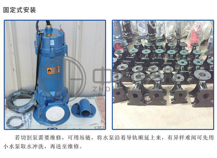 9、帶切割潛水泵安裝方式有固定式自動耦合安裝和移動式自由安裝兩種,可滿足不同的使用場合。
